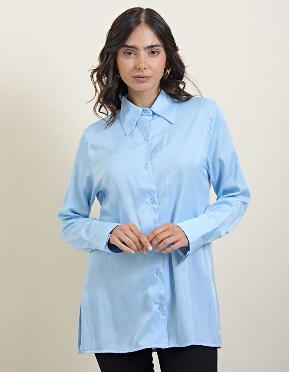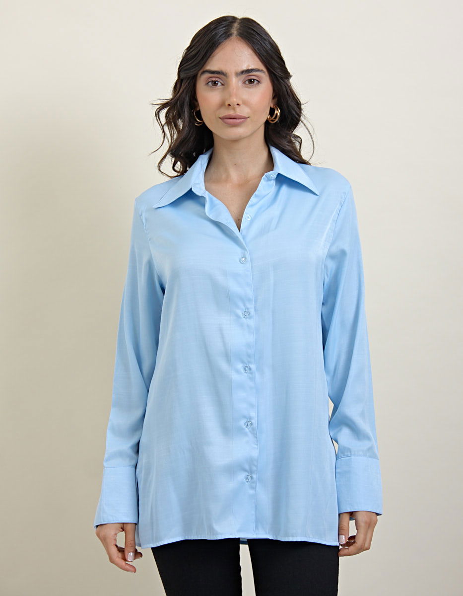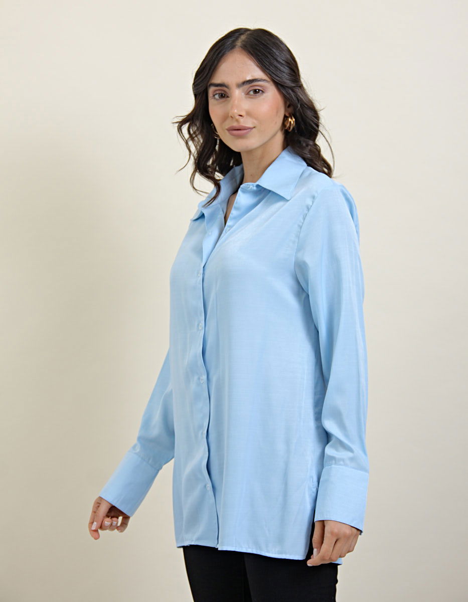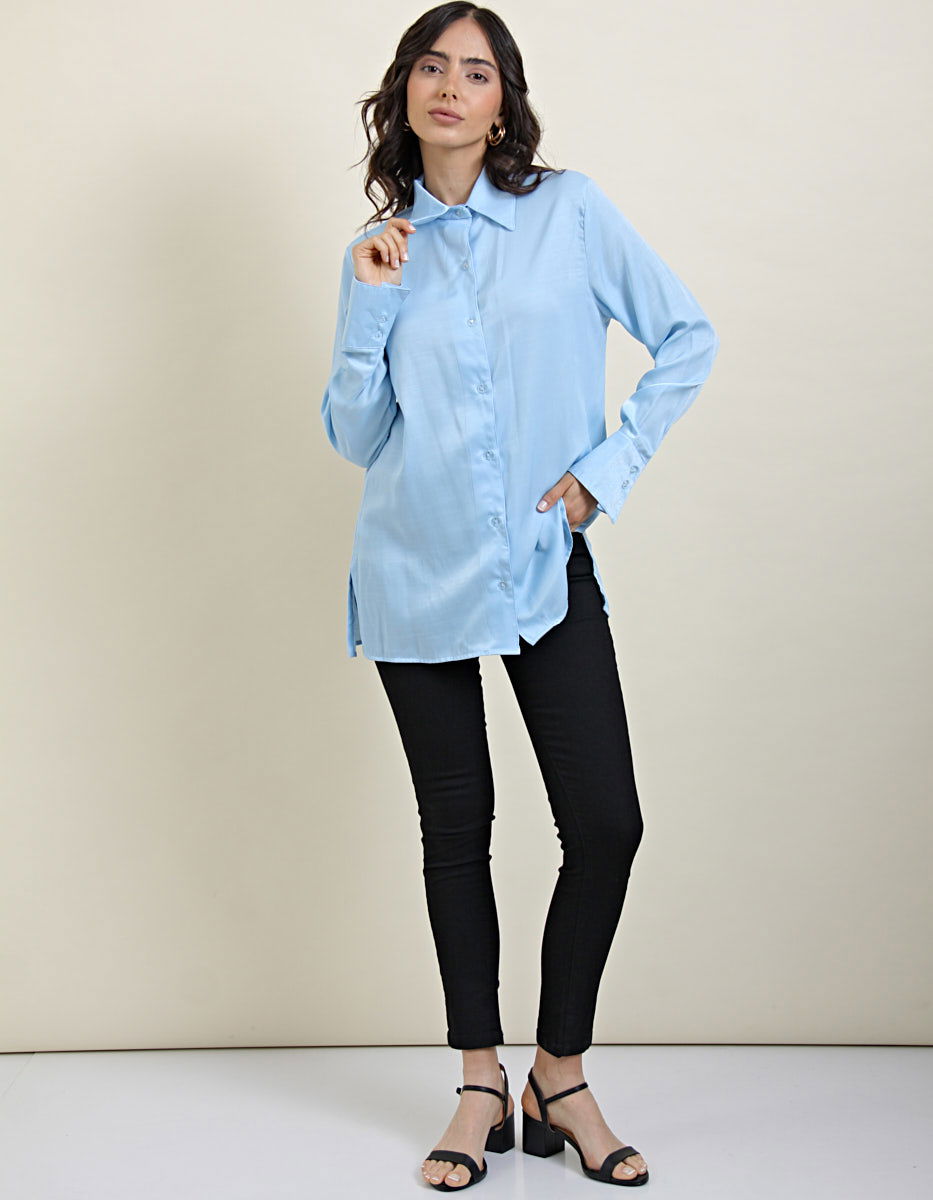 Camisa Saten Celeste