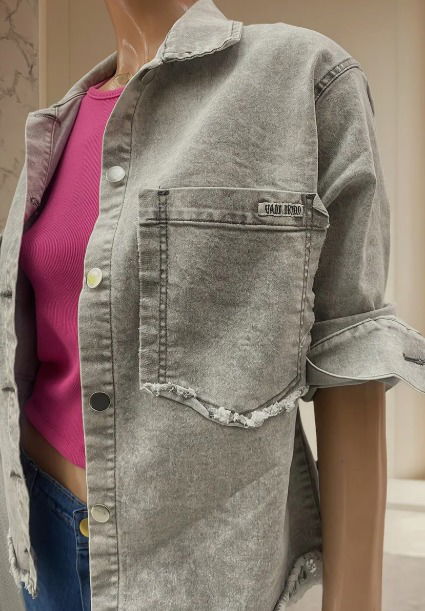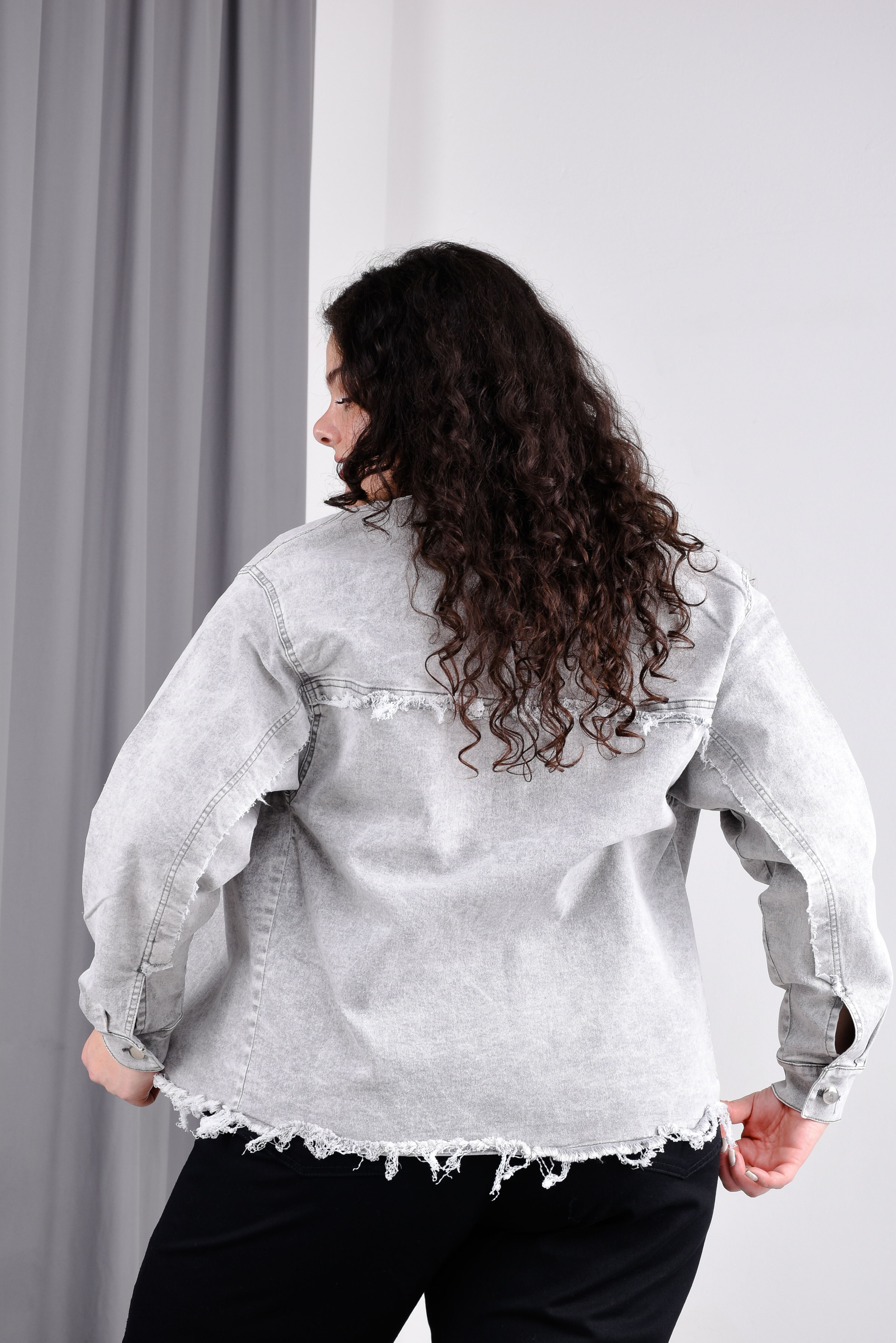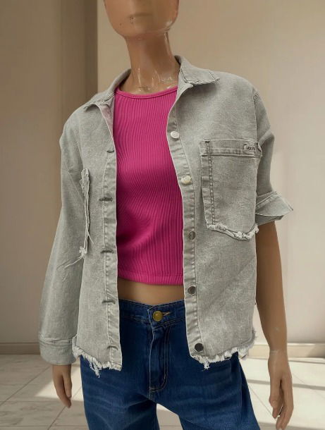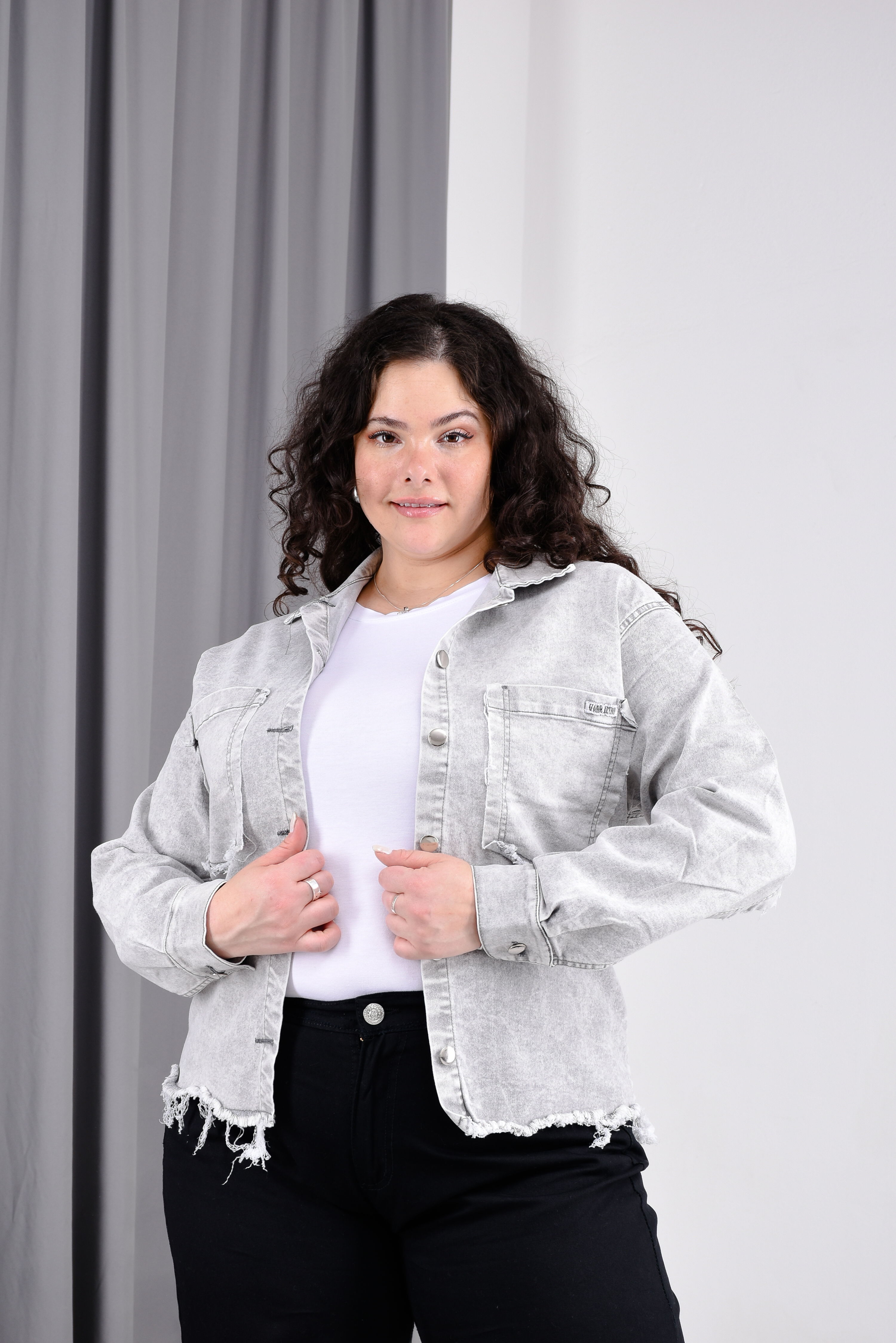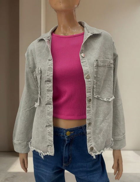 Campera de jean elastizada gris nevado, talles amplios 2 y 4. (Talle M abarca del S al M y talle XL abarca del L al XL)