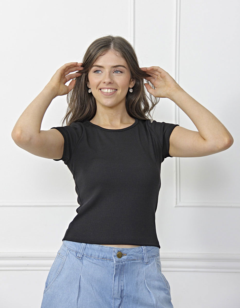 Remera básica de morley premium elastizada con calce al cuerpo.